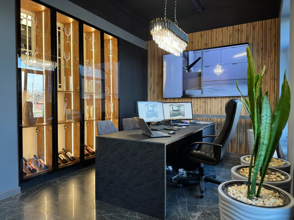 Если запланируете точечные или трековые светильники, то мы подскажем их оптимальное расположение, чтобы они не только не мешали открыванию, но и эффективно освещали комнату и рабочую зону.